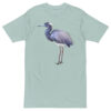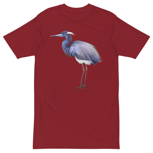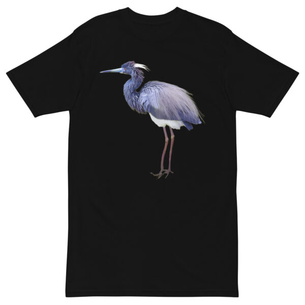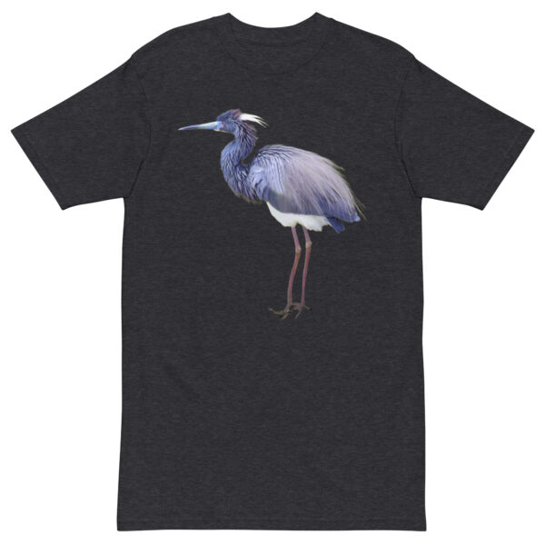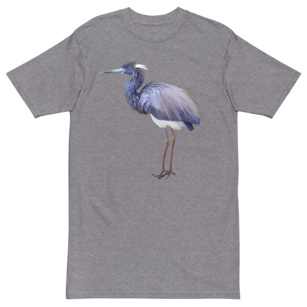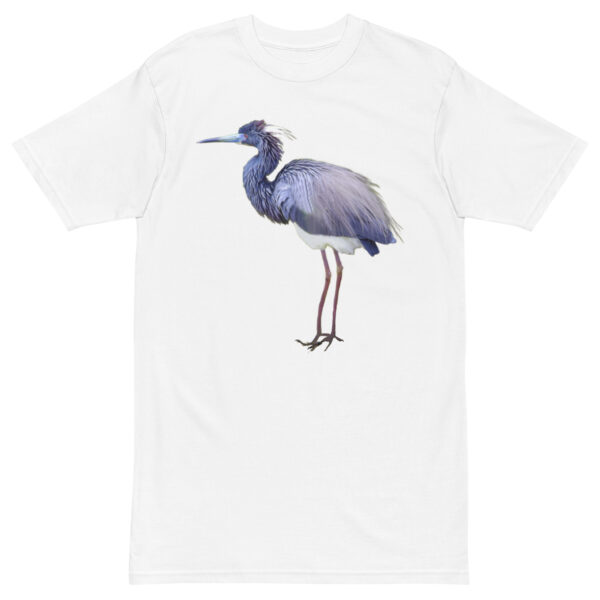 A photo of a beautiful blue heron captured ruffling their feathers on the banks of a Florida lake.