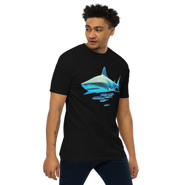 A shark swimming with a fish posse. I captured this image from the underwater camera at Manatee Lagoon in West Palm Beach, FL. They were swimming in the warm waters of the FPL station, which attracts all sea life to the area in the colder months.