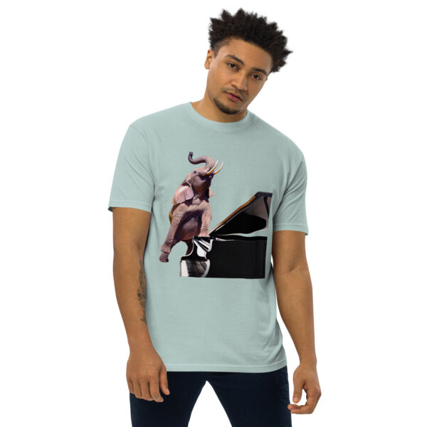 This is fun cartoonized version of an elephant, inspired by a very old wooden carving. As part of a series of animals in sports and music, this whimsical image will brighten your day! Perfect for gift giving to any elephant, piano, or music lover.