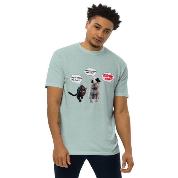 A cat and dog are a bit worried about what they’re hearing, but now they know it’s a lie. Created from original photos, please show your local animals that they’re safe with this timely message.