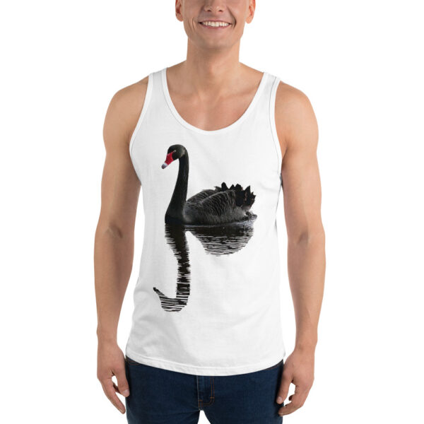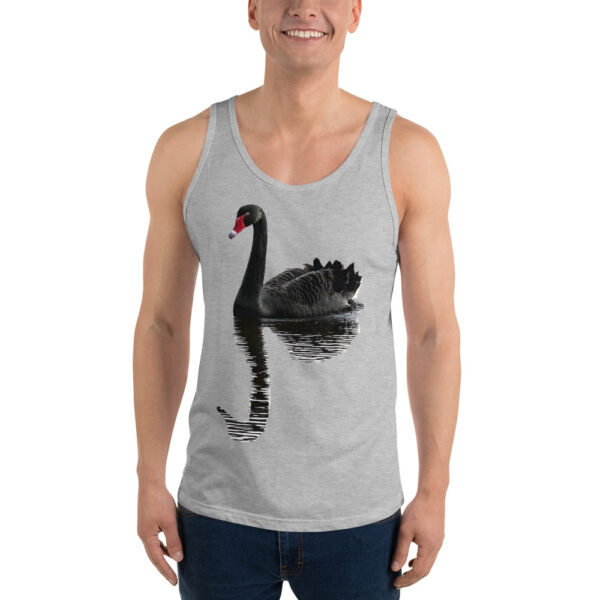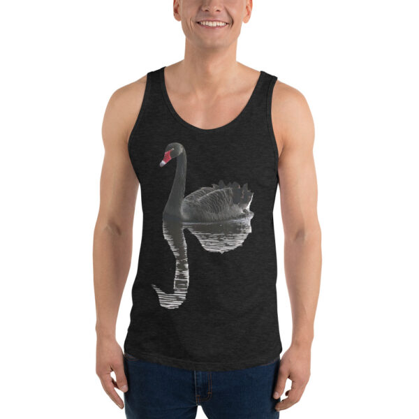 A photo of a beautiful black swan peacefully swimming in Lake Eola Park in Orlando Florida.