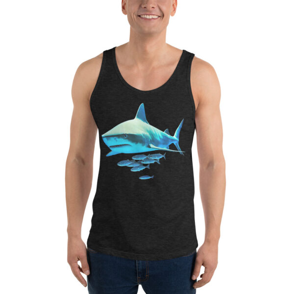 A shark swimming with a fish posse. I captured this image from the underwater camera at Manatee Lagoon in West Palm Beach, FL. They were swimming in the warm waters of the FPL station, which attracts all sea life to the area in the colder months.