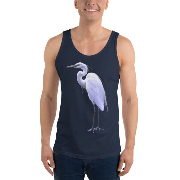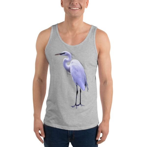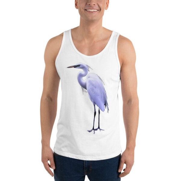 A beautiful snowy egret perched on the edge of a Florida lake looking for their dinner.