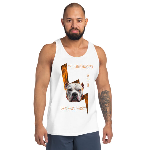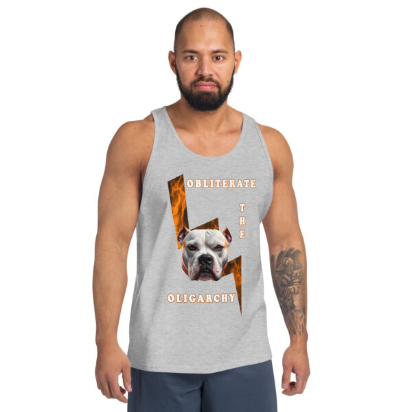 Based on a photo taken of a handsome pitbull in South Florida. This dog is not a fan of oligarchs, and has a message for them.