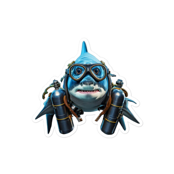 This image is a fun take on a shark captured from the underwater camera at Manatee Lagoon in West Palm Beach, FL. The shark was swimming in the warm waters of the FPL station, which attracts all sea life to the area in the colder months. Yes, sharks can breathe under water, so these tanks may have been “borrowed”.