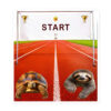 A race between a tortoise and a sloth at the starting line. It may take a while to see who won, but this fun design makes both the winner!