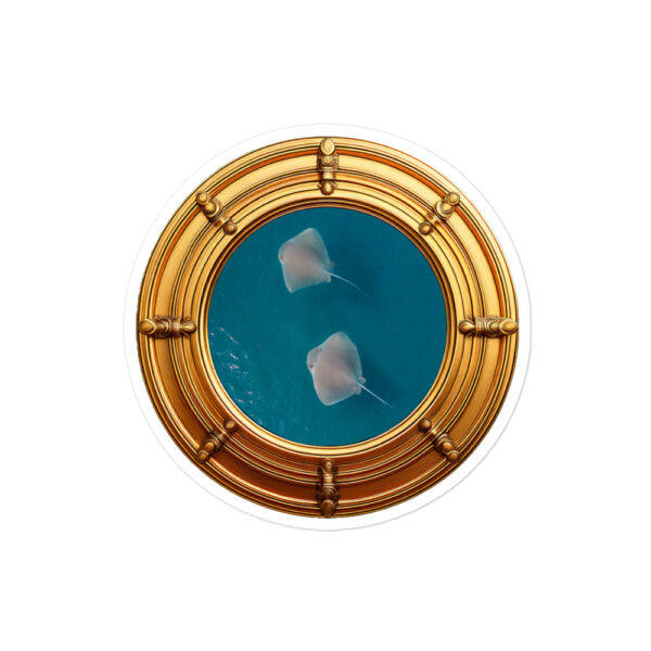 Two stingrays swimming, shot from my drone while flying from the break in the 7 Mile Bridge in Key Marathon Florida. Viewing through a porthole gives a unique perspective to these amazing sea animals.