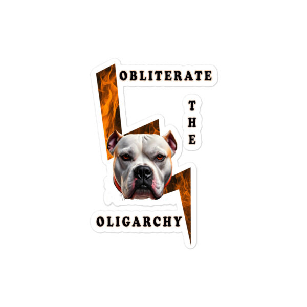 Based on a photo taken of a handsome pitbull in South Florida. This dog is not a fan of oligarchs, and has a message for them. These stickers are printed on durable, high opacity adhesive vinyl which makes them perfect for regular use, as well as for covering other stickers or paint. The high-quality vinyl…