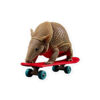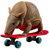 I took a photo of a curious armadillo in Fern Forest Nature Center in Pompano Beach, FL. I was going to zoom in on him/her, but they literally walked right over and started investigating my camera as I was crouched on the ground. I depicted them on a skateboard to make the trip faster!