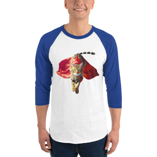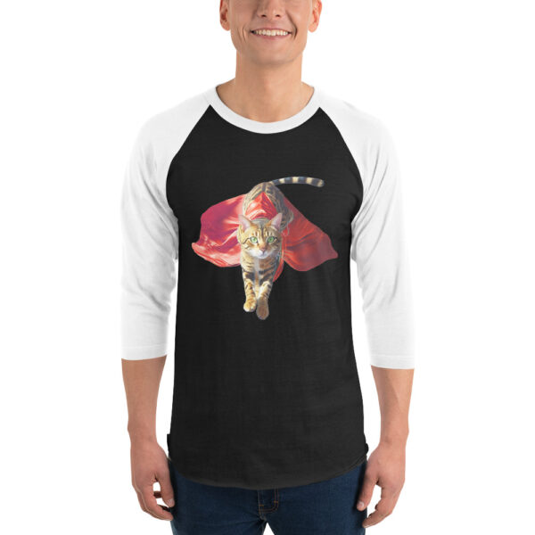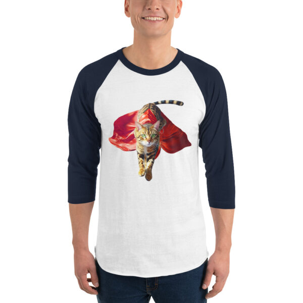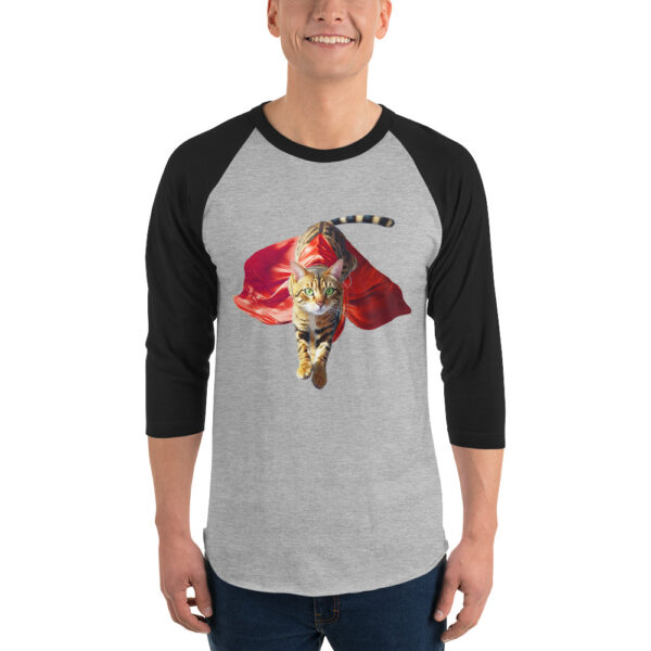 Based on a photo of an exotic bengal cat decked out in a red cape as a superhero ready to save the day!