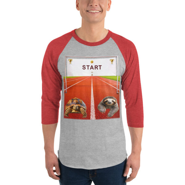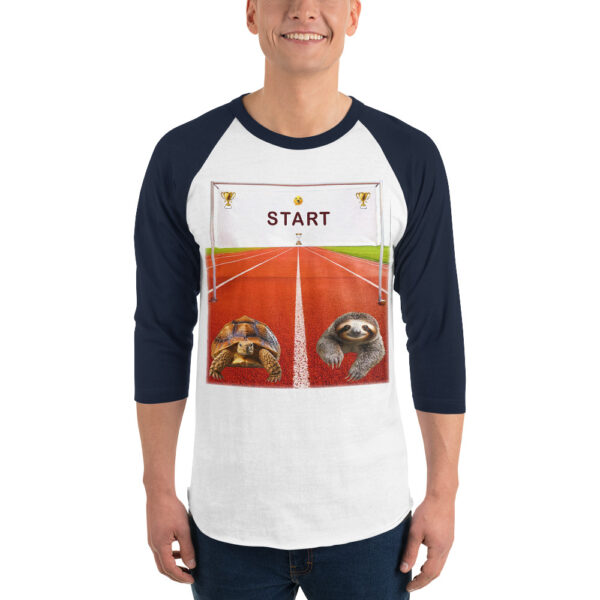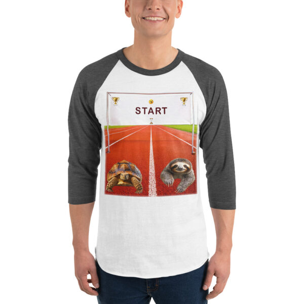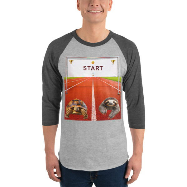 A race between a tortoise and a sloth at the starting line. It may take a while to see who won, but this fun design makes both the winner!