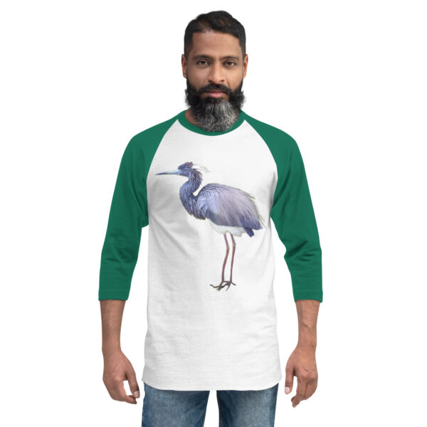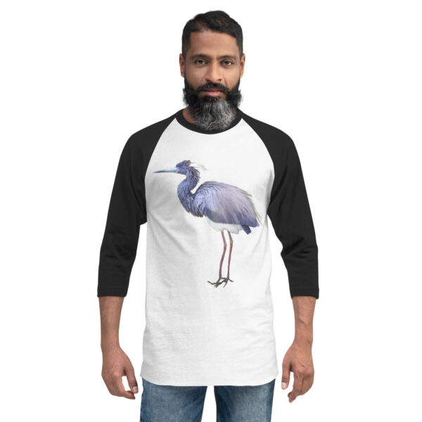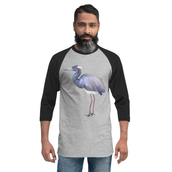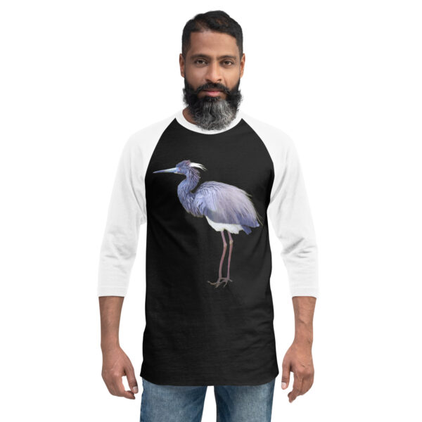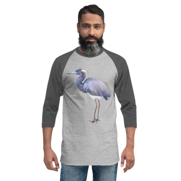 A photo of a beautiful blue heron captured ruffling their feathers on the banks of a Florida lake.