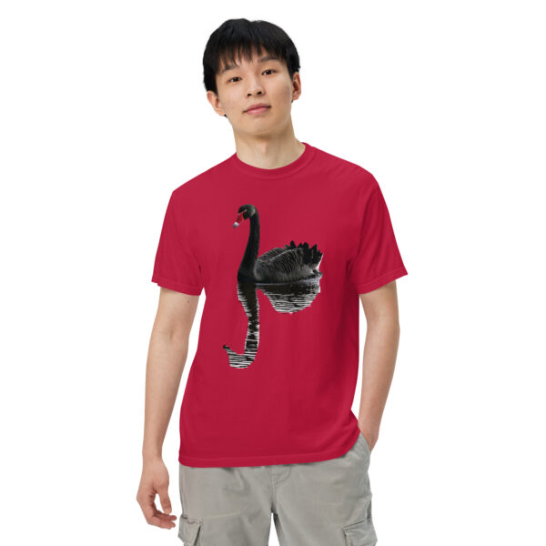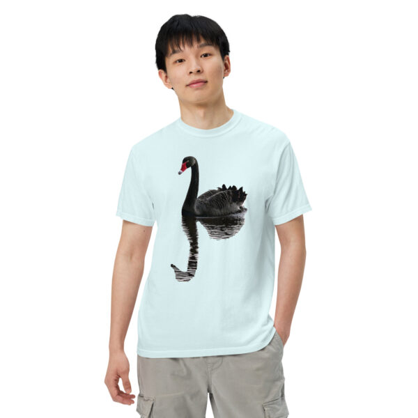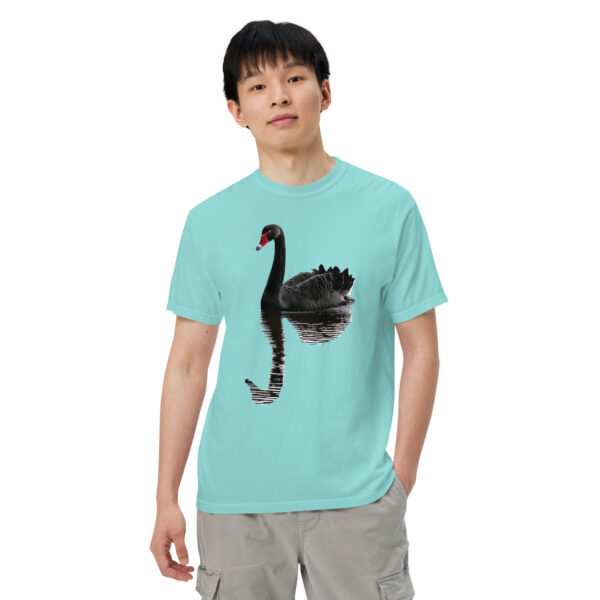 A photo of a beautiful black swan peacefully swimming in Lake Eola Park in Orlando Florida.