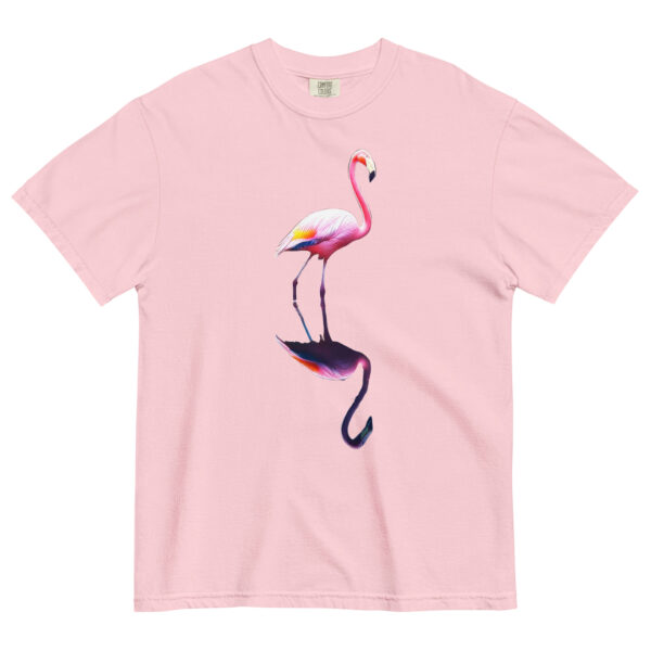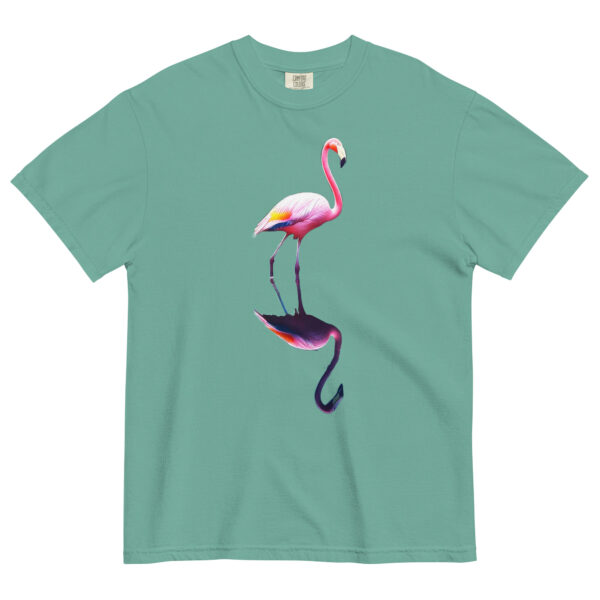 A photo taken at Flamingo Gardens in South Florida. This beautiful flamingo was standing in a beautiful lake with their reflection visible below. A thick, structured tee that’s also super soft and breathable Made of 100% ring-spun cotton. • 100% ring-spun cotton • Fabric weight: 6.1 oz/yd² (206.8 g/m²) • Garment-dyed • Relaxed fit •…