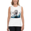 Based on a picture of a beautiful rare white tiger taken back in the 1980s at Metro Zoo in Miami FL. I now only support animals sanctuaries, as tigers should never be taken from their natural habitat. This stunning beauty was stalking, and looked to be in the perfect stance to be riding a wave! He’s ready to be enjoyed all tiger lovers, wildlife enthusiasts, and surfers.