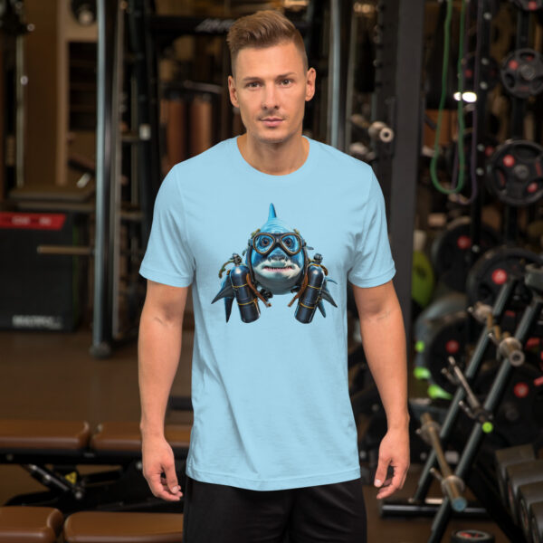 Based on a shark captured from the underwater camera at Manatee Lagoon in West Palm Beach, FL. The shark was swimming in the warm waters of the FPL station, which attracts all sea life to the area in the colder months. Yes, sharks can breathe under water, so these tanks may have been “borrowed”.