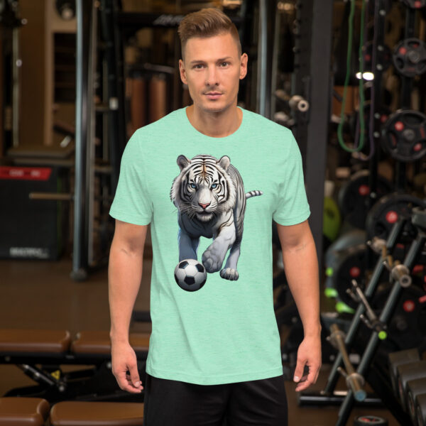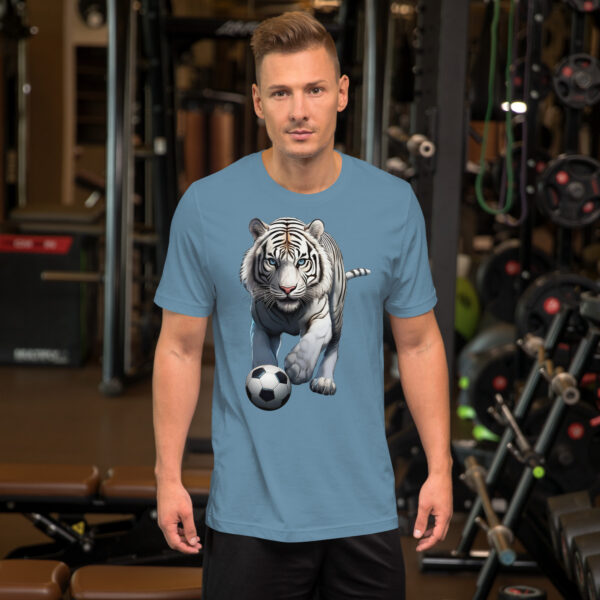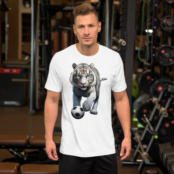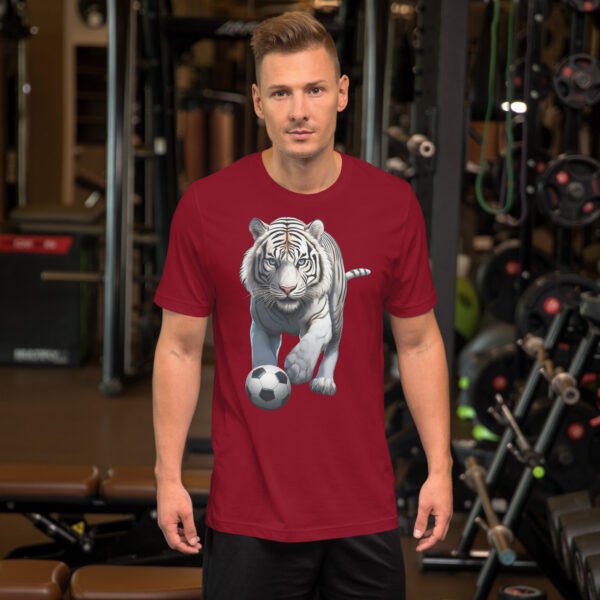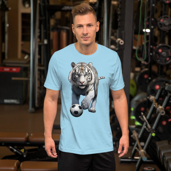 Based on a picture of a beautiful rare white tiger taken back in the 1980s at Metro Zoo in Miami FL. I now only support animals sanctuaries, as tigers should never be taken from their natural habitat. This stunning beauty was stalking, and looked to be in the perfect stance to be playing a match! He’s ready to be enjoyed all tiger lovers, wildlife enthusiasts, and soccer fans.