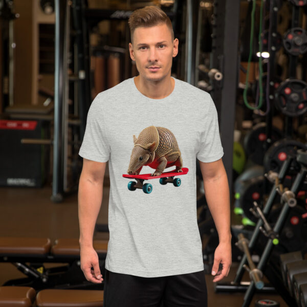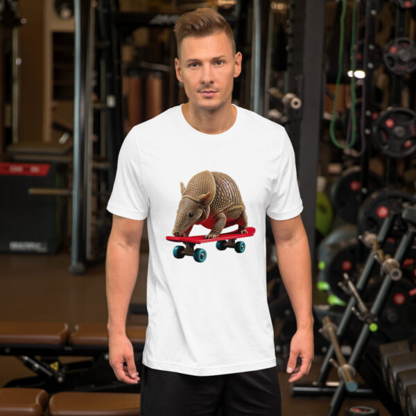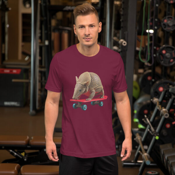 A photo of a curious armadillo in Fern Forest Nature Center in Pompano Beach, FL. They literally walked right over and started investigating my camera as I was crouched on the ground. I depicted them on a skateboard to make the trip faster!