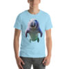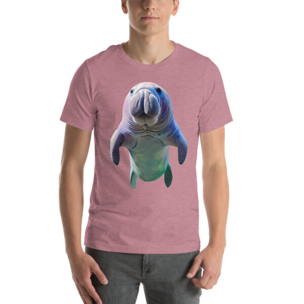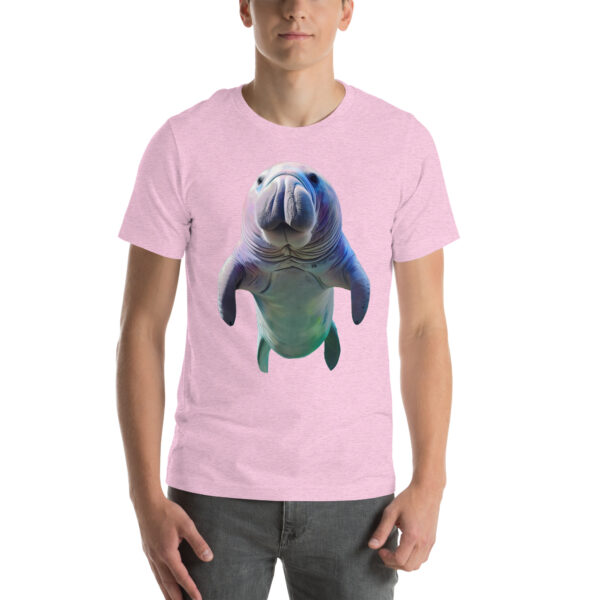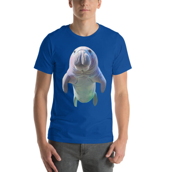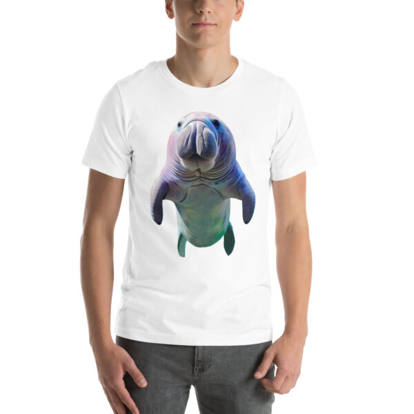 Taken from a photo of a manatee captured swimming towards an underwater camara. This gentle sea cow was swimming to the surface of the water to take a breath.