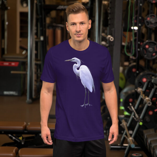 A beautiful snowy egret perched on the edge of a Florida lake looking for their dinner.