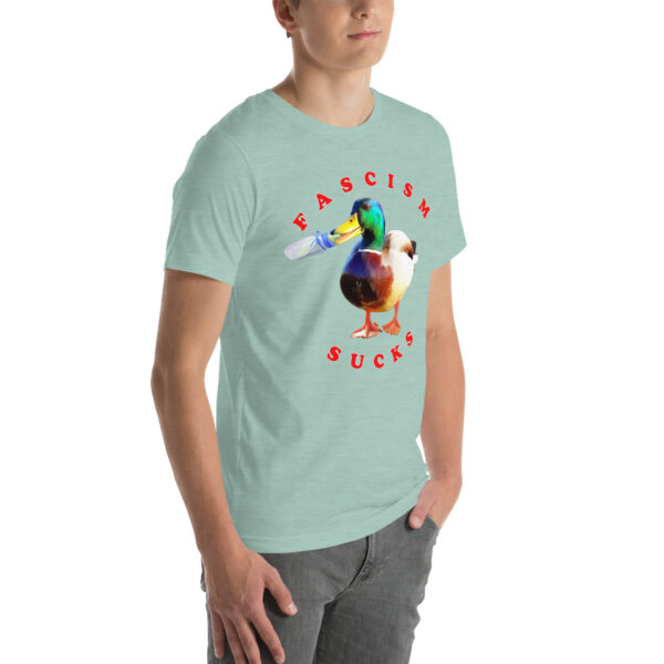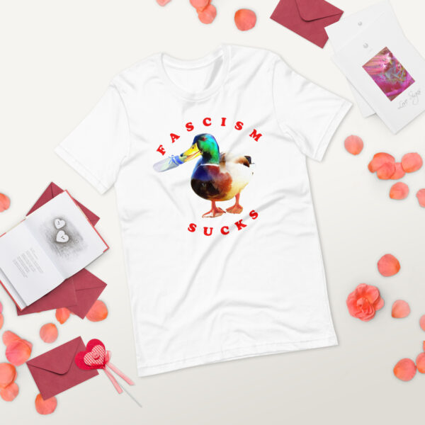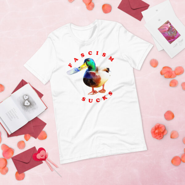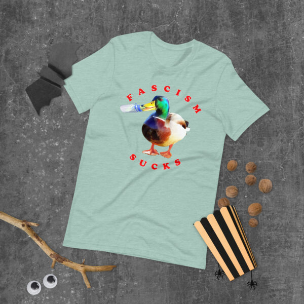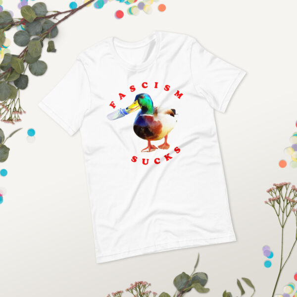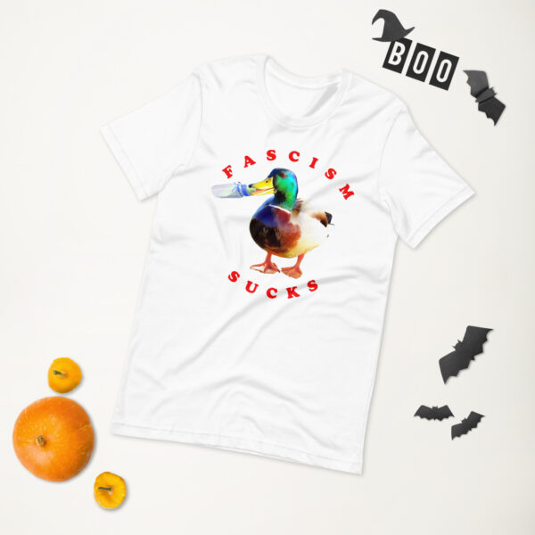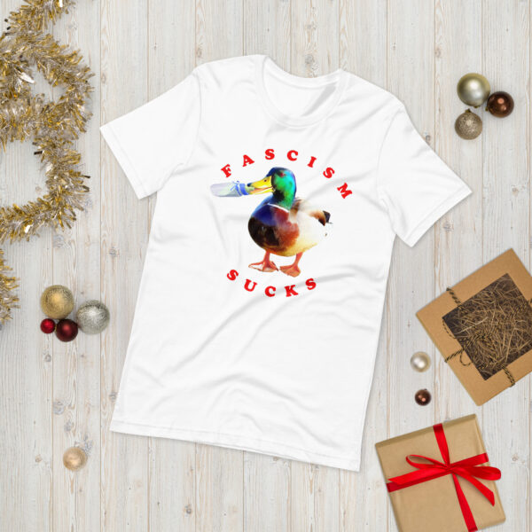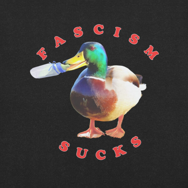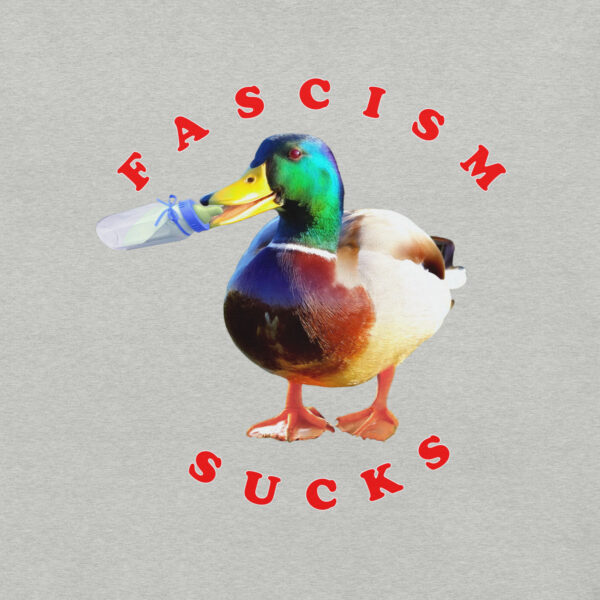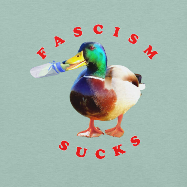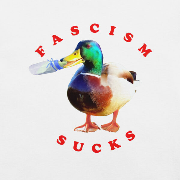 Based on a Mallard duck photographed in Plymouth, Ma., this duck has a statement to make about fascism.