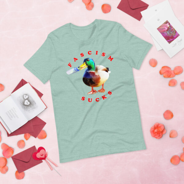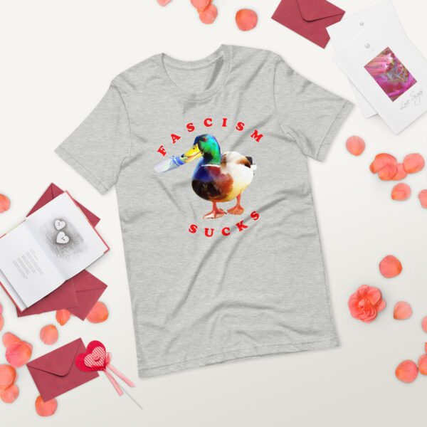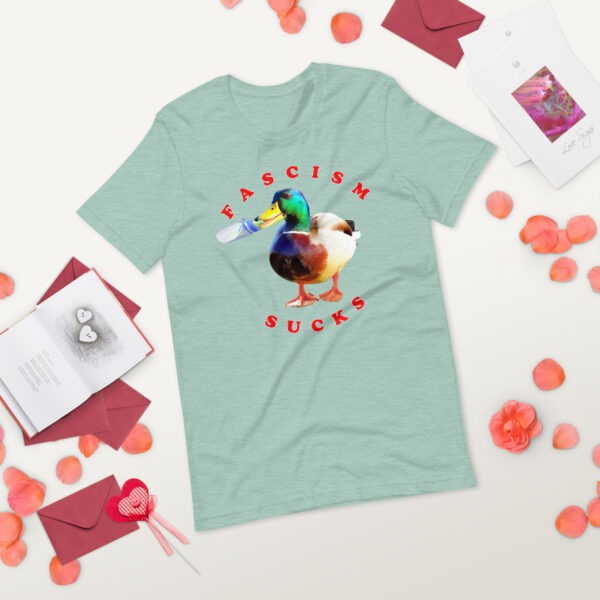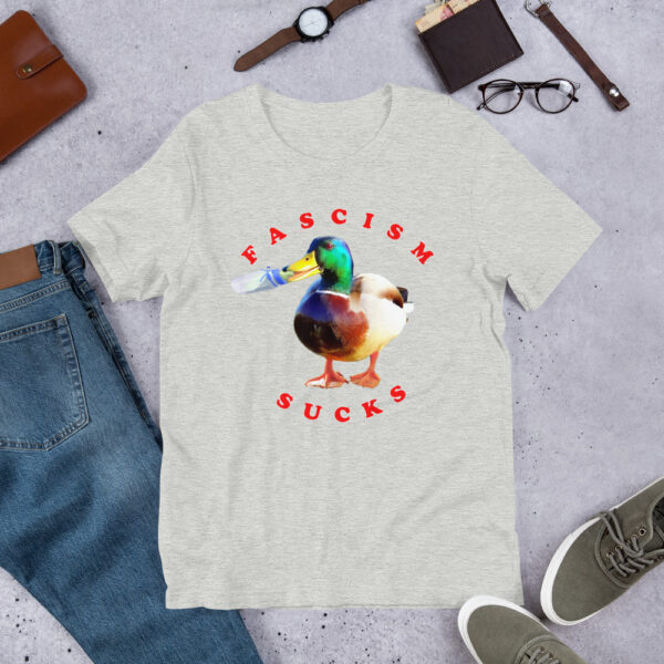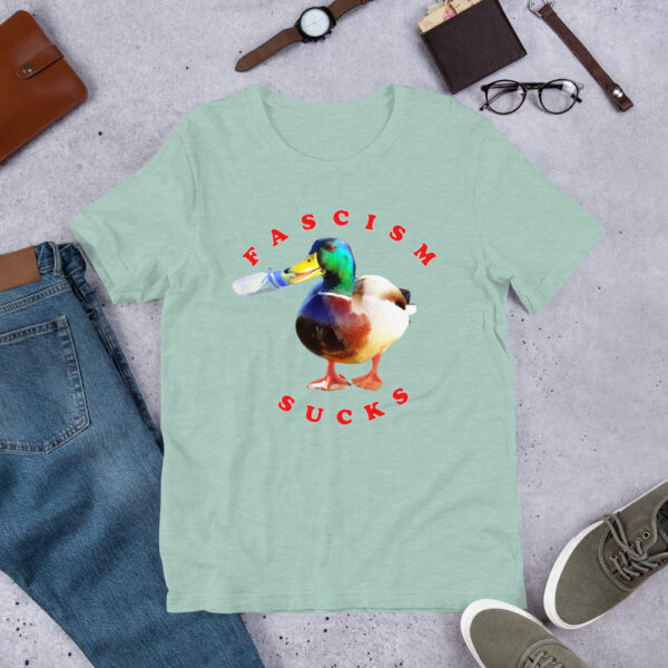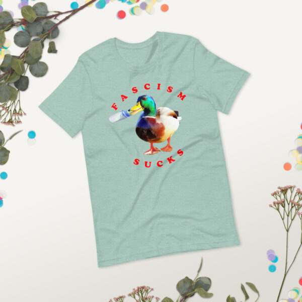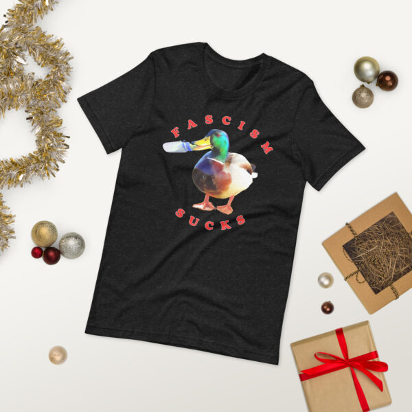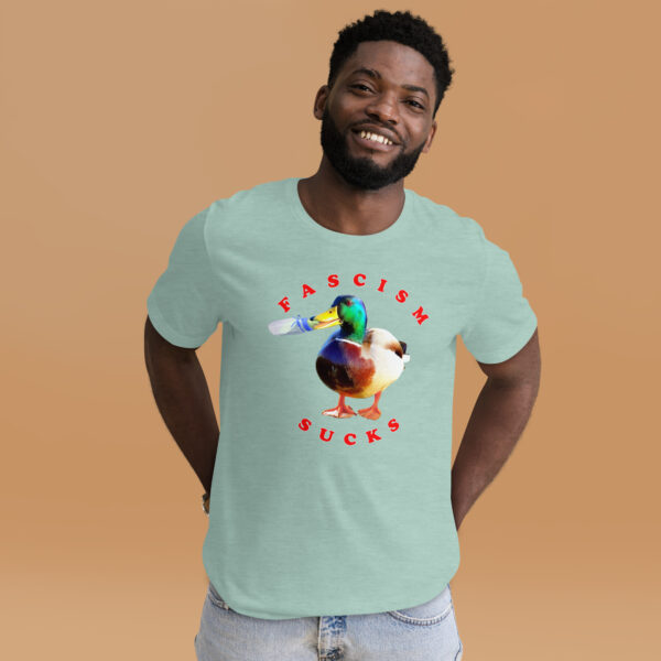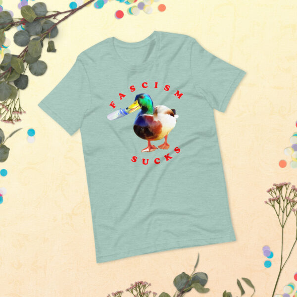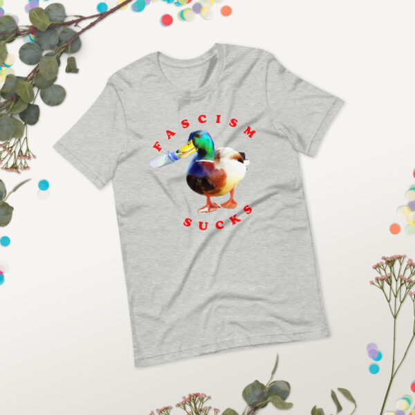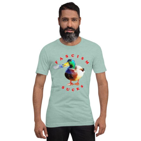 Based on a Mallard duck photographed in Plymouth, Ma., this duck has a statement to make about fascism.