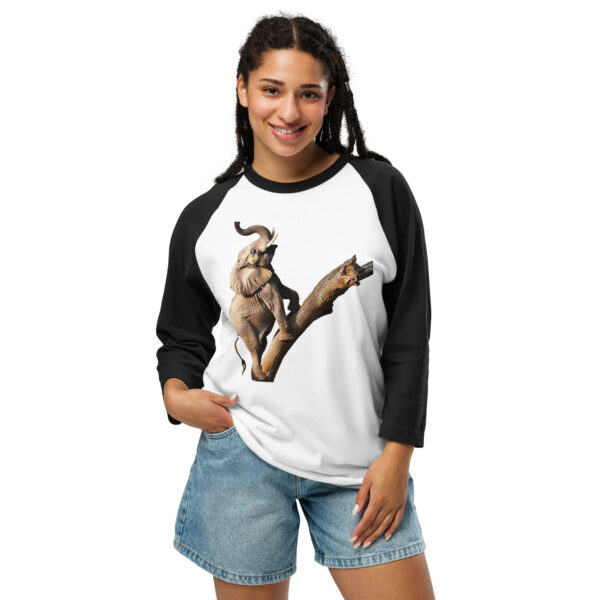 An elephant stretching out on a tree branch. This is a beautiful and unique art print for all elephant lovers.