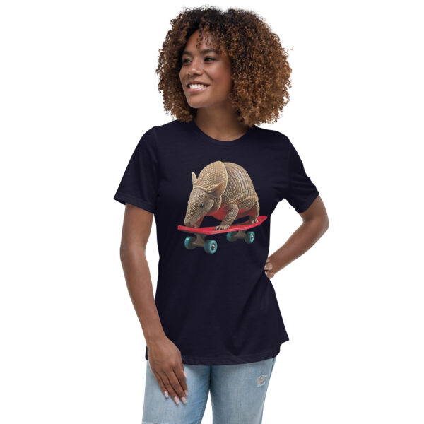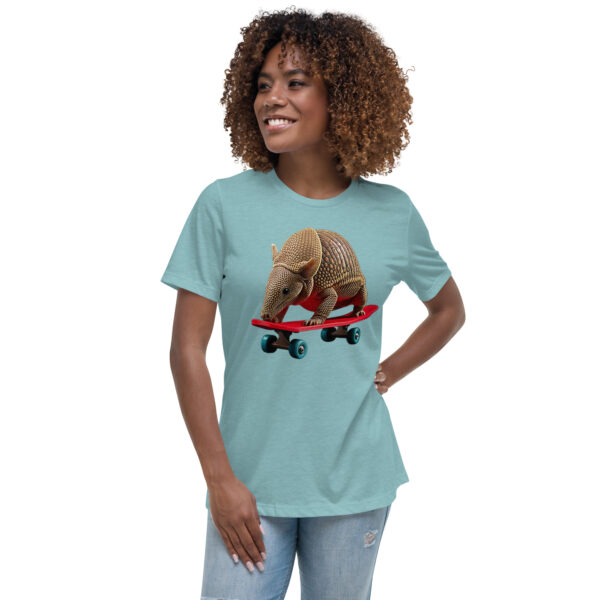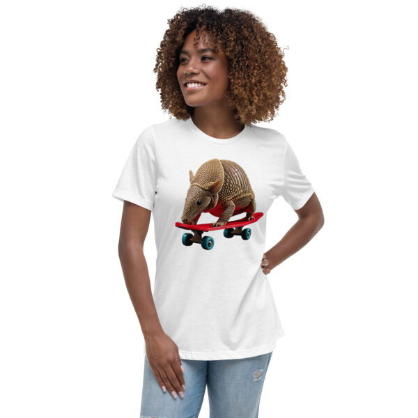 A photo of a curious armadillo in Fern Forest Nature Center in Pompano Beach, FL. They literally walked right over and started investigating my camera as I was crouched on the ground. I depicted them on a skateboard to make the trip faster!