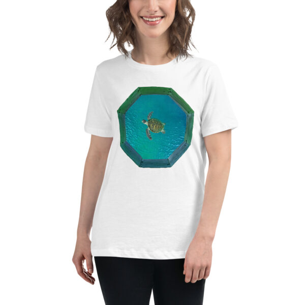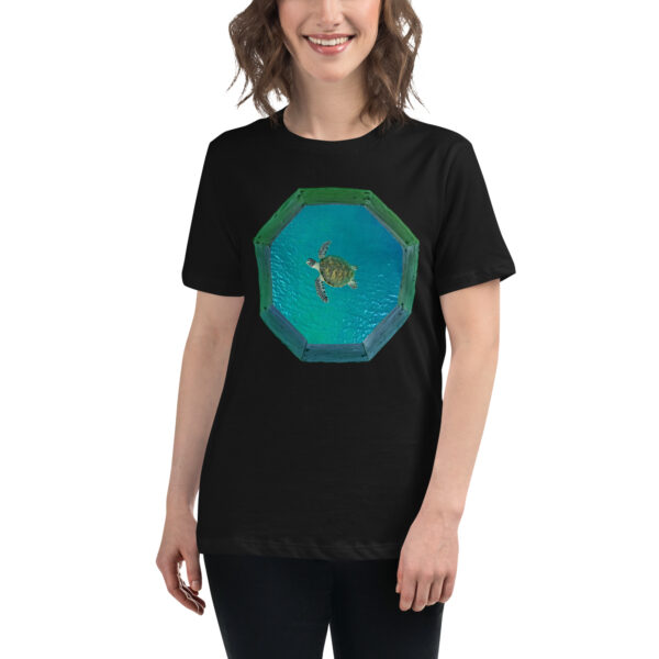 A sea turtle captured while flying my drone from the break in the 7 Mile Bridge in Key Marathon Florida. This sea turtle image looks great in the rustic frame design, and is a beautiful gift for those who love the ocean and sea life. A very soft and comfortable women’s t-shirt. • 100% combed…