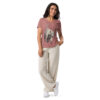 Soft fabric and relaxed fit, with a V-neck to add a touch of style.